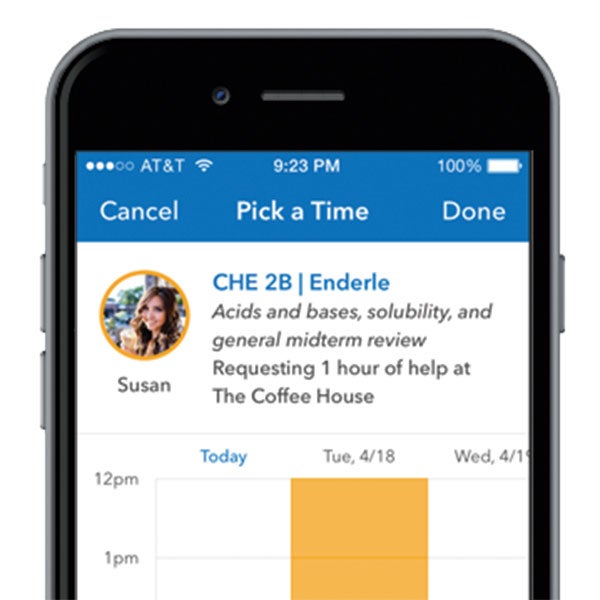 The duo described the app as Uber for academic assistance: UC Davis students who need help with specific classes can connect with classmates who can provide tutoring. For example, someone needing help in Chemistry 2B can request a two-hour tutoring session, make arrangements for the meeting and pay through the app. Sessions cost $20 an hour, with tutors earning $15 an hour.