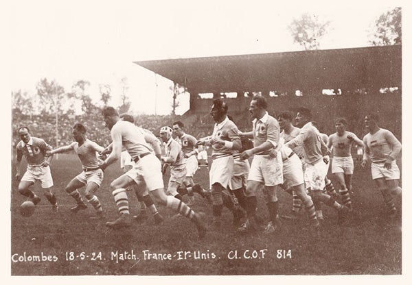 Only two teams competed in Antwerp: the U.S. and France, and the latter had the edge, considering most of the U.S. players were fairly new to the sport. Before a crowd of 20,000, the Americans pulled off an upset, 8-0, in the rain. “At a council of war we decided that because the ground was wet and slippery and the ball likewise, we would make it a forward game,” reported Rudy Scholz of the University of Santa Clara, one of the players. “The French tried a backfield game, and they lost although they were fast. The slippery ball and field proved their undoing. Our forwards outweighed the French easily, and Babe Slater was a wonder in the lineouts”—when a player throws the ball in from the sideline, hopefully to be caught by a tall, leaping teammate.