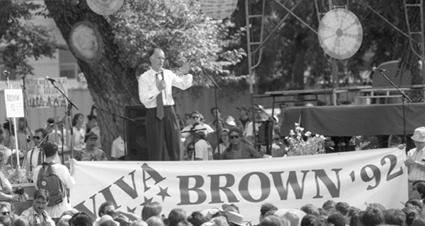Cesar Chavez spoke at the festival in 1989. Then-presidential candidate Jerry Brown appeared in 1992. Actor Ed Begley Jr. came to talk about the value of electric vehicles in 1997. José Argüelles returned several times as a speaker.