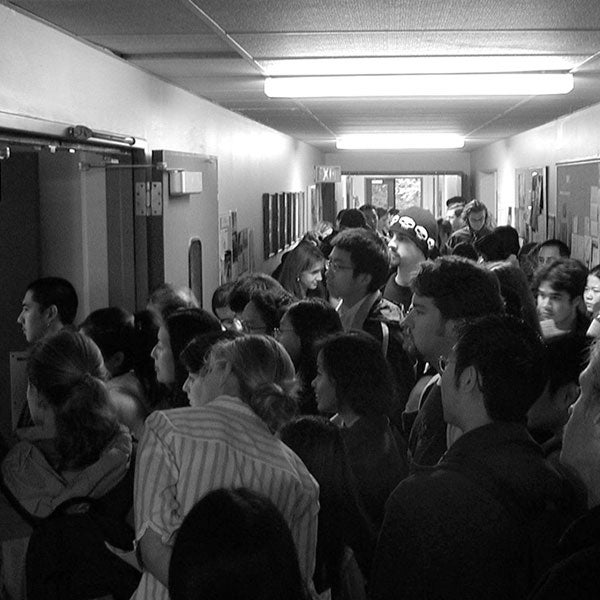 With few practice rooms and teaching studios in the Music Building, students and faculty have had to use space in other buildings, converted offices and even the corridors for rehearsals. Occasionally, a brass player can be found practicing under the covered walkway outside.