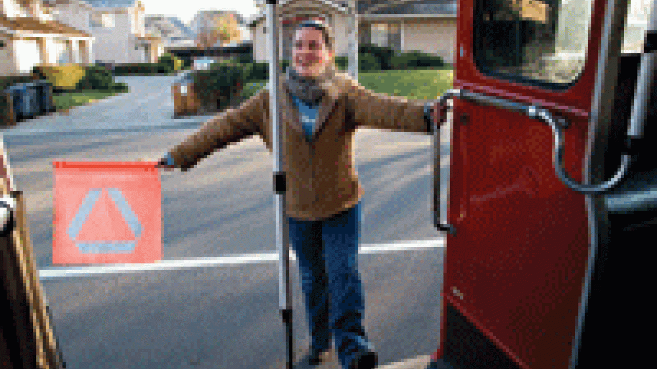 With student Dave Jones at the wheel, the 57-year-old double-decker and its original diesel engine came to the end of the line in regular transit service, first in London and then in Davis. No other bus of its kind in the world has lasted as long on the original engine, said Anthony Palmere, Unitrans assistant general manager. Now, in order to use No. 1014 in regular service, the transit system must outfit the bus with a cleaner-burning engine. Otherwise, Unitrans will keep the bus in its original, historic condition and use it for special occasions, such as the Picnic Day Parade. Unitrans has five other double-deckers, two converted to compressed natural gas, two with new diesel engines and the fifth getting a new diesel engine. All of the double-deckers came from London, with the first two arriving in 1967. During regular transit duty in London and Davis, No. 1014's engine racked up more than 1.25 million miles of service. That equals 50 trips around the world, or 118 round trips between London and Davis. Inside: Student employee Andrea Nutt was the conductor aboard Unitrans bus No. 1014 when it made history on Dec. 14.