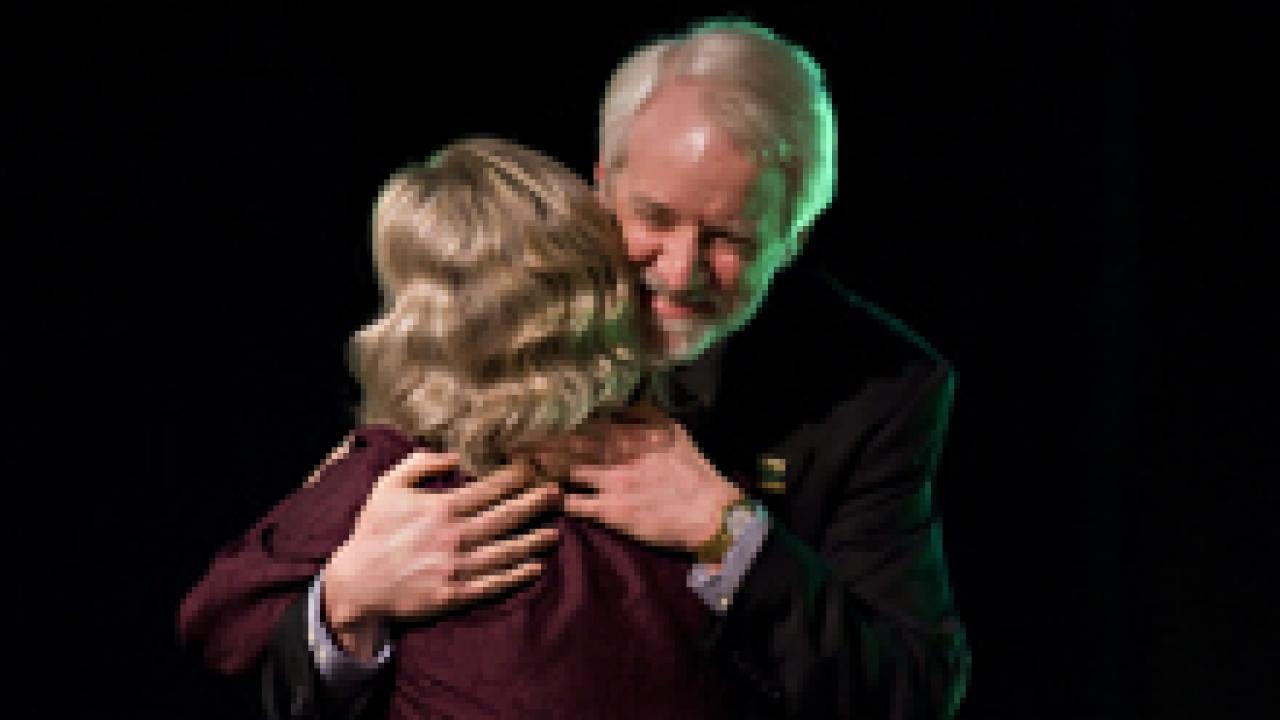 Professor Donald Bers gets a hug from Claire Pomeroy, vice chancellor for Human Health Sciences and dean of the School of Medicine, at the Endowed Chairs and Professorships Dinner in Freeborn Hall on April 1. Bers, whose research focuses on the factors involved in cardiac muscle contraction, is the new holder of the Dean’s Chair in Cardiovascular Research in Honor of Joseph Silva. UC Davis has 113 chairs and professorships. Donor funding provides continuing support for research, teaching and public service.