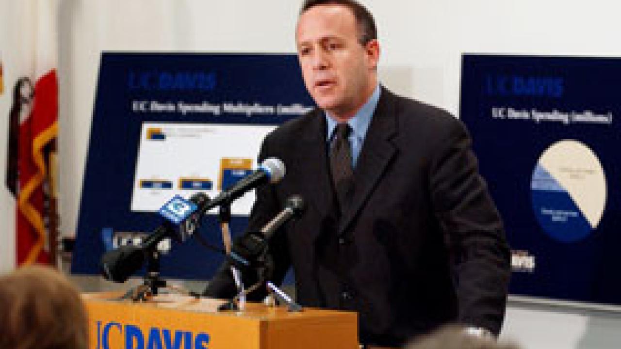 Darrell Steinberg was among two state Assembly members to recognize the substantial impact UC Davis has on the region during a press conference held March 5 in Sacramento. Other speakers included Assemblywoman Lois Wolk. Steinberg, who was recently named Budget Committee Chairman for the lower house, said that, with higher education a key issue in this year's state budget, the study -- showing $2.7 billion-plus dollars generated by UC Davis -- should help higher education advocates make their budget cases. A Web site highlighting the report is located at www.news.ucdavis.edu/economic_impact/.