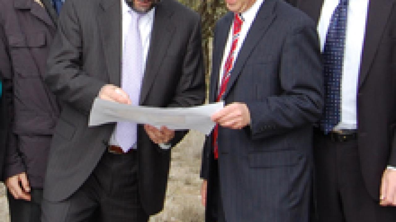 Pictured at the proposed site are (left to right): Juan Marti, president and founder of Onion Education; Santiago Blasco Martin, executive director, Spain, for Inveravante; Harold Levine, dean of the UC Davis School of Education; and Jean-Xavier Guinard, UC Davis’ associate vice provost of international programs.