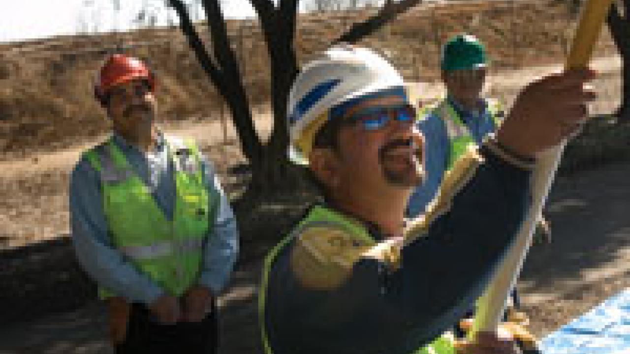 Grounds division workers carefully tend the olive trees that produce the fruit that goes into UC Davis olive oil. Pictured are, from left, Jose Aguayo, Gary Perez and Serafin Velasco. The university launched its olive oil last year, and the product sold out. Soon you will have a chance to purchase this year's release, and a new product, vinegar. A tasty celebration is planned from 4 to 6 p.m. March 14 at the Silo Café & Pub. People planning to attend are asked to RSVP at ucdoliveoil@ucdavis.edu.