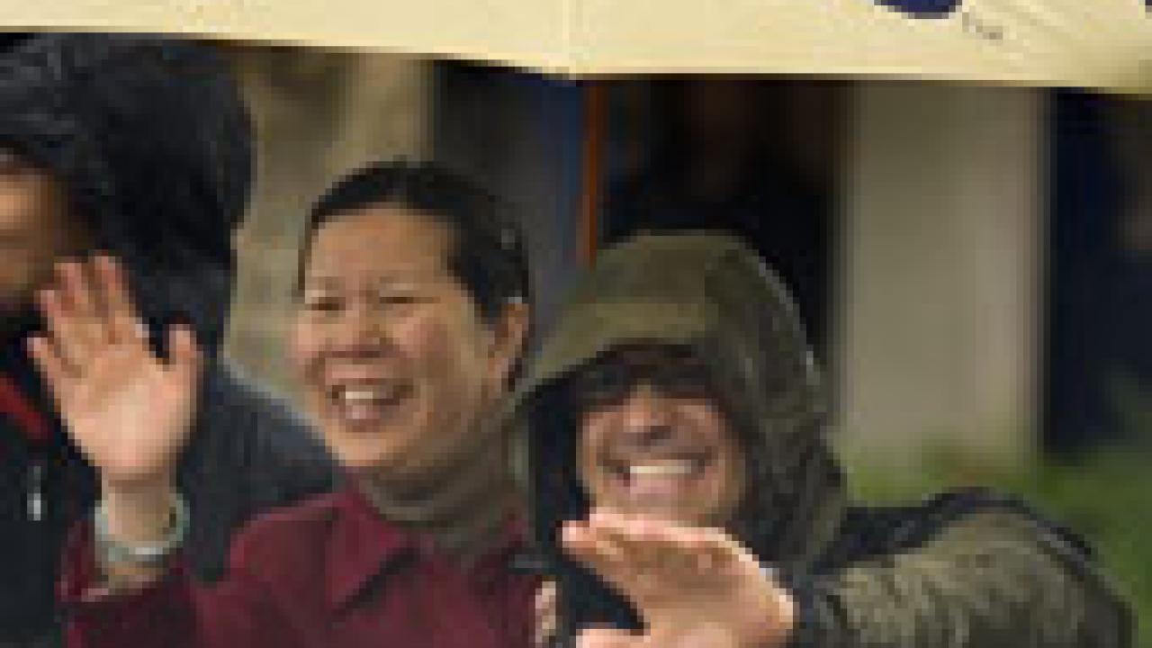 Though it rained on Picnic Day, tens of thousands of people visited campus April 14 for the 93rd annual celebration of all things UC Davis. On the right, alumna Roseanne Oyoung, left, and her husband, Michel Yasmine, wave to friends during the parade near Wickson Hall.