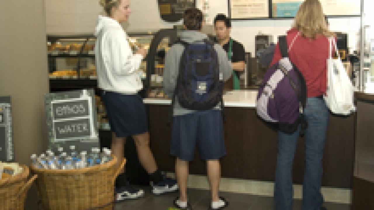 People placed orders at the Starbucks counter soon after the company’s first fully licensed store on campus opened Feb. 23. Located inside the main lobby at the Activities and Recreation Center, the new coffee house offers a complete beverage menu during the hours of 7 a.m. until midnight Monday through Friday and 8 a.m. until 10 p.m. Saturday and Sunday. University officials say that the ARC is an ideal place for the new coffee spot—during the 2007-08 fiscal year, the ARC registered more than 1.1 million visits for fitness, recreation and health activities, and another 1.2 million visits for training sessions, workshops, commencements and other meetings. “We are excited to have this full service Starbucks store become a part of the ARC patron experience,” said Matt Fucile, associate director of operations for the Department of Campus Recreation.