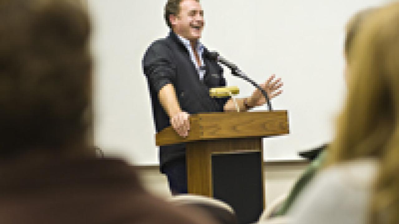 William Langewiesche, author of five books and an international correspondent for the magazine Vanity Fair, talks at a University Writing Program workshop on Dec. 2. He said journalism is not a ”dying trade,” despite the newspaper industry slowdown. “The real problem is getting better material — if you can produce a good story, then you will be successful,” The California Aggie quoted Langewiesche as saying. A Davis resident and former airline pilot, the writer spoke on campus before leaving for his next assignment — in troubled Pakistan.