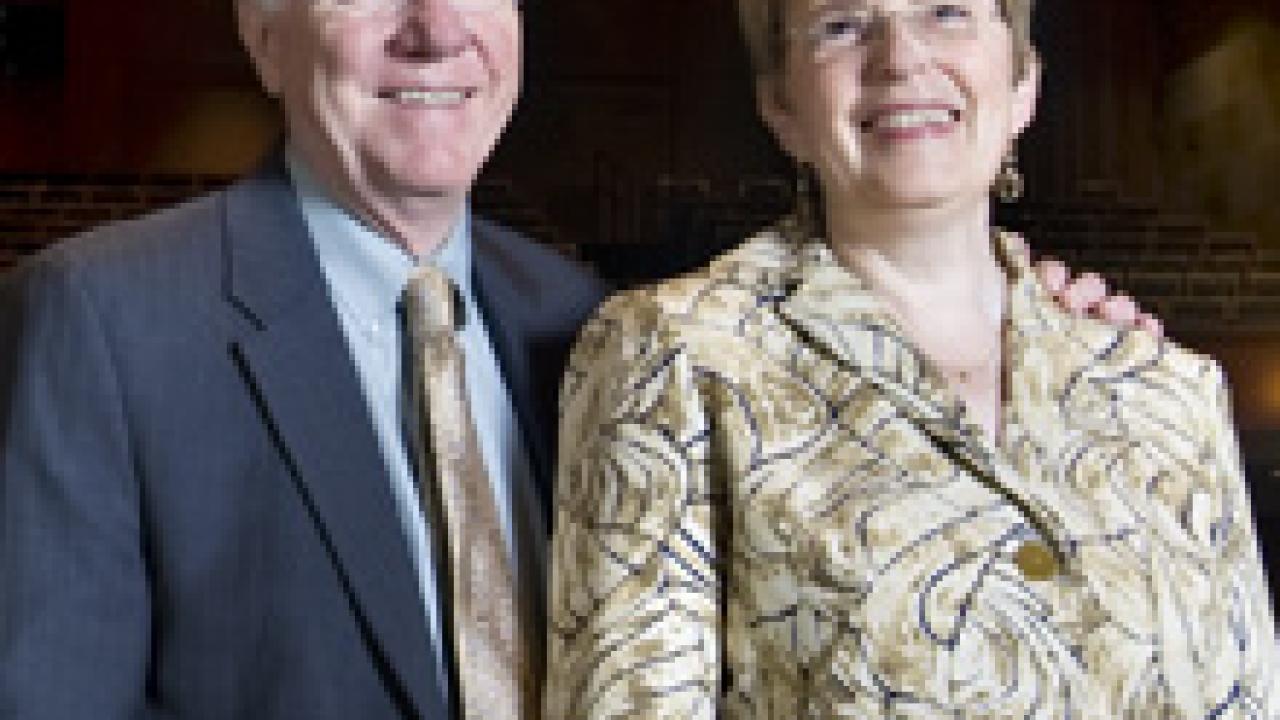 Outgoing Chancellor Larry Vanderhoef and his wife, Rosalie, are inviting faculty, staff and students to an open house June 5 at the Chancellor’s Residence. Soon the Vanderhoefs will vacate the home, as the chancellor steps down from his post after 15 years. As much as the open house provides people with an opportunity to give their regards to the Vanderhoefs, the event also gives the chancellor and his wife the opportunity to say thank you to the campus community. The open house is scheduled from 4 to 6 p.m. in the home’s courtyard, site of hundreds of official university functions. The Chancellor’s Residence is at 16 College Park, the cul-de-sac opposite Howard Way at the Davis campus’s northern boundary. Organizers said everything at the open house is being donated or paid for with donations. That includes cookies and lemonade, organizers said, plus music by Police Chief Emeritus Calvin Handy and his band, Jazz Patrol. The Vanderhoefs are pictured recently in Jackson Hall at the Mondavi Center for the Performing Arts, site of a May 30 concert in their honor by Broadway star Patti LuPone. The 8 p.m. concert is open to the public, and tickets were still available as of May 27: (530) 754-2787 or (866) 754-2787, or www.mondaviarts.org.